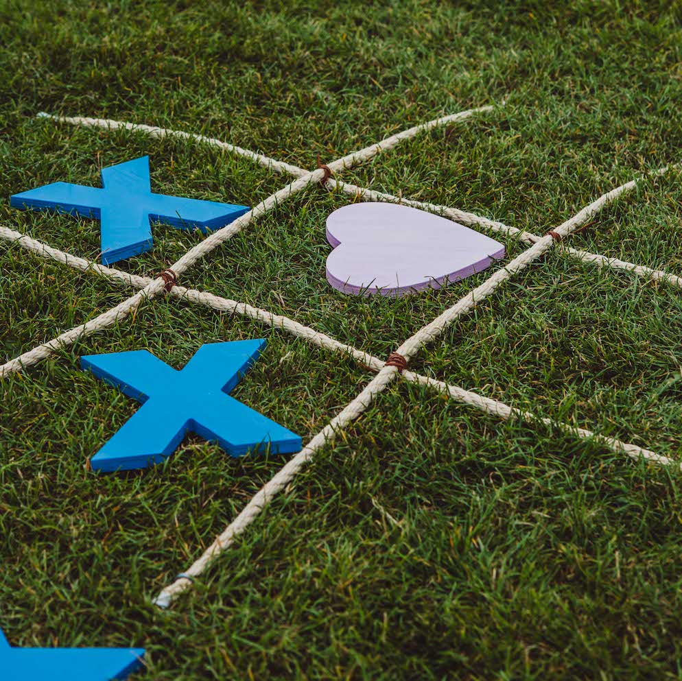 Tic Tac Toe or Noughts & Crosses is a classic game that we have given a supersized twist to! Providing hearts and crosses, this tactical game requires strategy and observation for the win, you can even increase difficulty with the addition of gin!